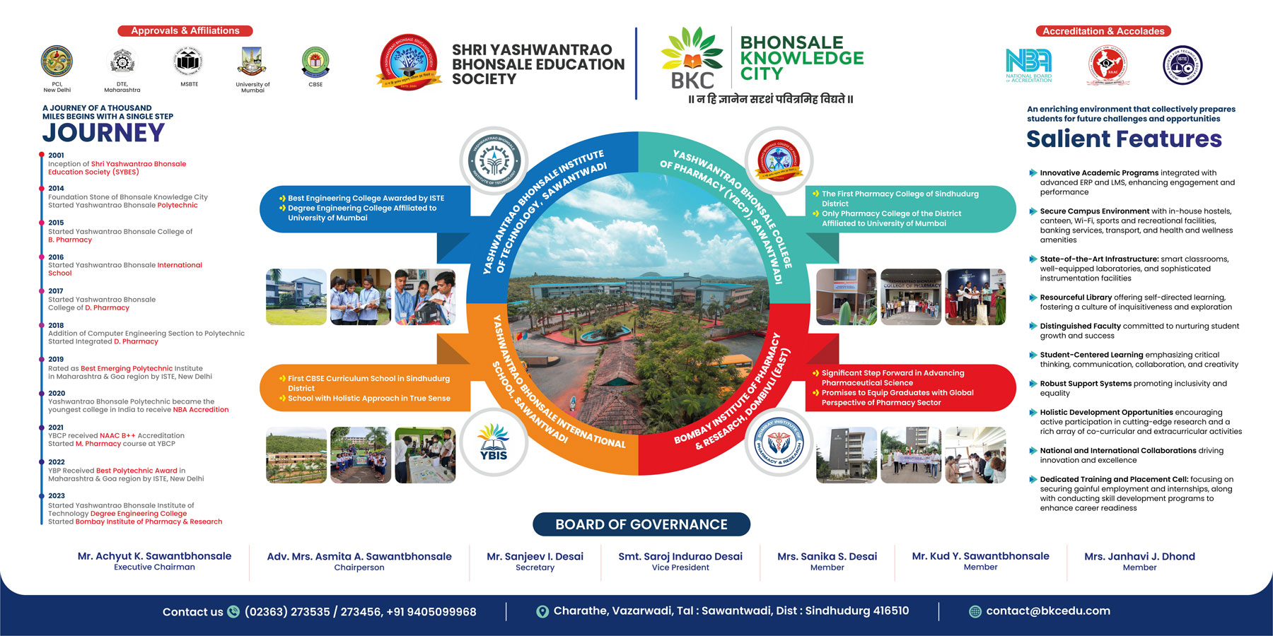 In a very short span Shri Yashwantrao Bhonsale Education Society has gained a very high reputation and public faith for its honest & transparent management. It has earned people’s trust that every initiative taken by the society will be against the benefit of people and future generation only. The society has taken a huge stride towards providing the advance education to each & every rural student of the region. Continuing the same zeal, SYBES is all set to expand its wings by setting up new educational institutes which will help the students to reach new heights in the world of global opportunities.